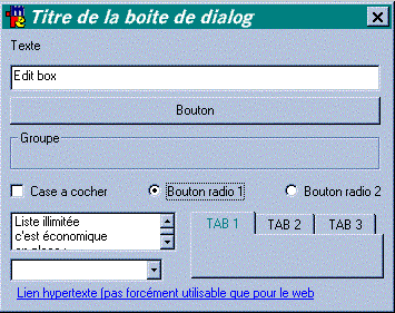 listes, bande de texte, case a cocher et autres...